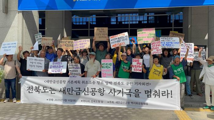 새만금 신공항 개발 사업 기본계획 취소 판결 이후 환경단체가 국토교통부와 전북도에게 항소하지 말 것을 요구했다.새만금신공항백지화공동행동은 16일 도청 앞에서 기자회견을 통해 "국토부와 전북도는 조…