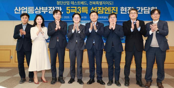 김정관 산업통상부 장관이 22일 전북을 방문, 5극3특 성장엔진 산업 현장 간담회를 열었다.도에 따르면 이번 행사는 전북이 선정한 성장엔진 산업의 추진 현황을 점검하고 산업부와 전북도 간 협력 방안을 …
