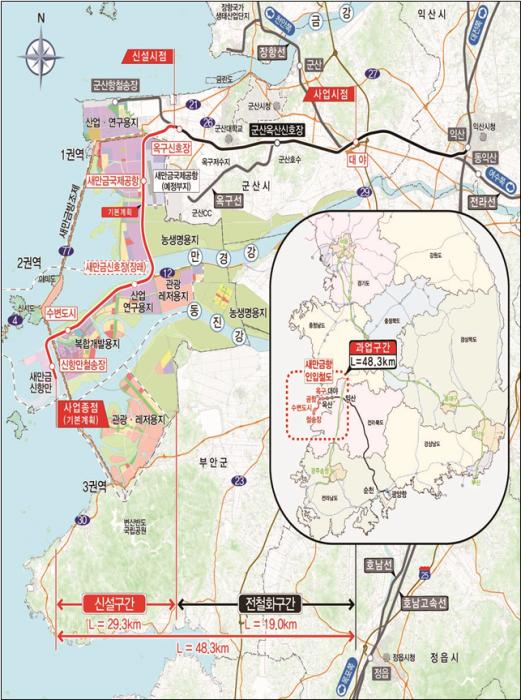 위치도전북도는 12일 국토교통부가 새만금항 인입철도 기본계획을 고시했다고 밝혔다.이번 계획 확정으로 새만금 시대의 본격적인 교통 인프라 구축이 사실상 시작된다.이번 계획은 군산 대야역에서 새만금…