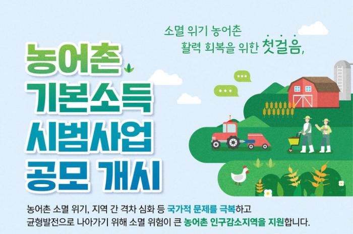 전북도는 14일 농림축산식품부의 농어촌 기본소득 시범사업 공모에 도내 인구감소지역 7개 군 전체가 신청을 마쳤다고 밝혔다.이번 공모는 전국 인구감소지역 69개 군 중 6곳을 선정한다.농식품부는 지난달 …