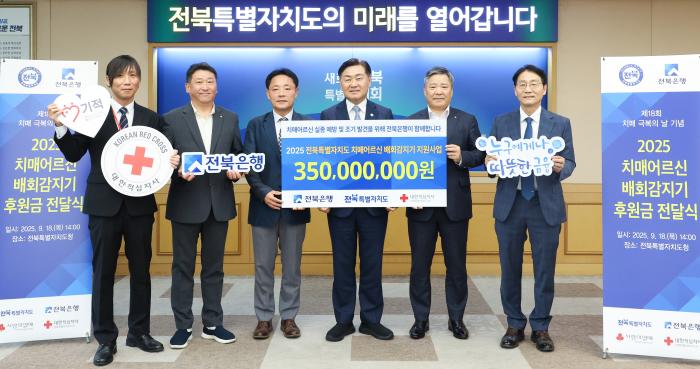 전북특별자치도는 18일 도청에서 전북은행이 배회감지기 1,000대 보급을 위해 총 3억5천만 원을 기탁했다고 밝혔다.이날 행사에는 김관영 전북특별자치도지사, 백종일 전북은행장, 오현권 부행장, 대한적십…