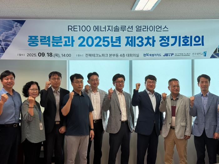전북특별자치도가 RE100 실현을 앞당기기 위해 풍력산업 실증과제를 본격화, 전북형 에너지 전환에 속도를 낸다.도는 18일 전북테크노파크에서 ‘RE100 에너지솔루션 얼라이언스 풍력분과 제3차 정기회의’…