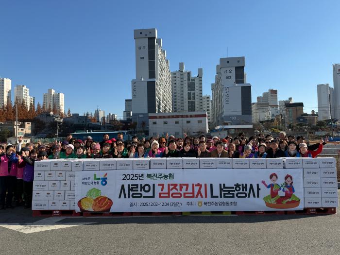 지역민 따뜻한 겨울나기에 앞장서온 북전북농협 ‘사랑의 김장 나눔행사’가 펼쳐졌다.북전주농협 이광우 조합장은 12월 2일부터 4일까지 삼일동안 "‘사랑의 김장 나눔행사’를 진행했다고 4일 밝혔다.북전…