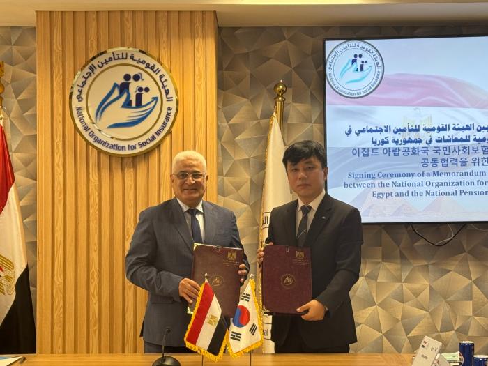 국민연금공단(이사장 김태현, 이하 공단)은 이집트 사회보험청(NOSI, National Organization for Social Insurance of the Arab Republic of Egypt)과 연금제도 및 사회보장 분야 협력 강화 위한 양해각서(M…