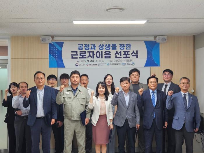 고용노동부 군산지청(지청장 전대환)과 노사발전재단 호남지사(지사장 강수영)은 24일 노사정이 함께하는 '공정과 상생을 향한 근로자이음 공동선포식'을 군산 근로자이음센터에서 개최했다.이날 공동선포식…