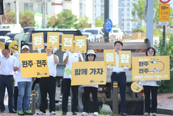 전주시청 공무원들이 완주·전주 행정구역 통합에 대한 공감대를 넓히기 위해 완주군 13개 읍·면을 찾고 있다.전주시는 완주·전주 행정 통합에 대한 공감대 확산 및 지역 동향 파악을 위해 각 부서별로 완…