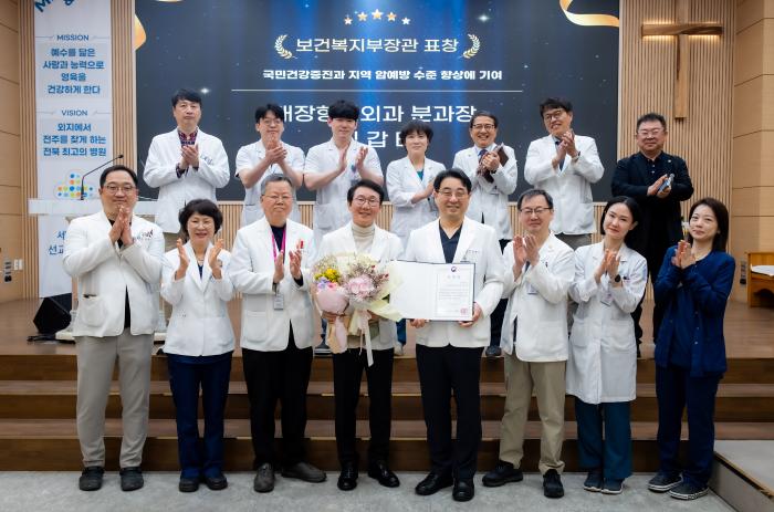 전주예수병원 대장항문외과 김갑태 분과장이 ‘제19회 암 예방의 날’ 국가 암관리사업 발전과 국민 건강 향상에 기여한 공로를 인정받아 보건복지부 장관 표창을 수상했다.김갑태 분과장은 평소 투철한 사…