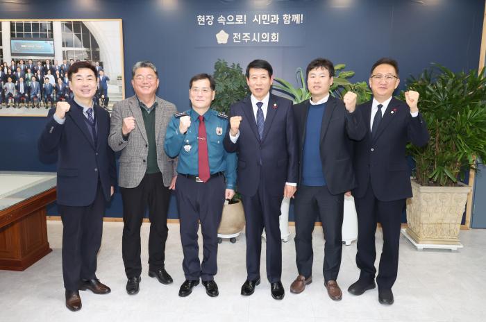 전주시의회는 14일 의장실에서 전주 덕진경찰서와 간담회를 갖고 지역 치안 강화를 위한 협력을 다짐했다.이날 간담회는 △지역 내 범죄 예방 및 생활 치안 강화 △시민 안전 확보를 위한 정보 공유 △취약 …