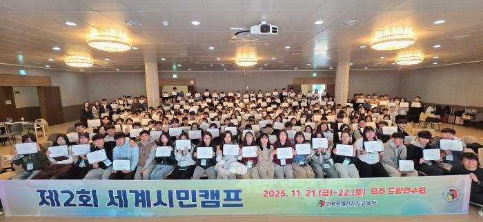 전북특별자치도교육청이 학생 해외연수 경험을 공유하고 미래 세계시민으로서의 역량을 높이기 위한 '2025 세계시민 캠프'를 지난 21일부터 22일까지 무주 드림연수원에서 성황리에 개최했다.'상을 향한 도…