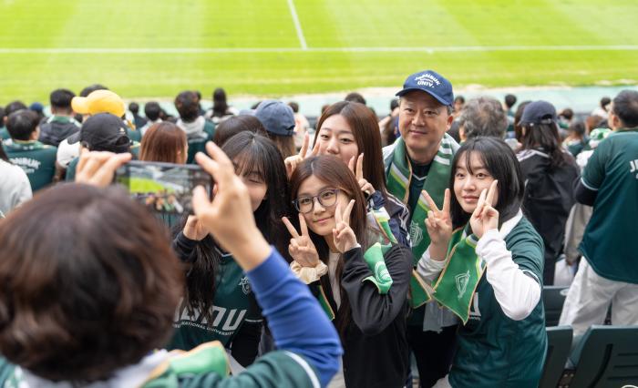 “전북대학교와 함께 10번째 우승”전북대학교(총장 양오봉)와 전북현대모터스축구단(단장 이도현)이 지난 주말 '파트너데이'를 통해 하나 된 열정을 보여줬다.지난 18일 오후 2시 수원FC와의 '2025 하나은…
