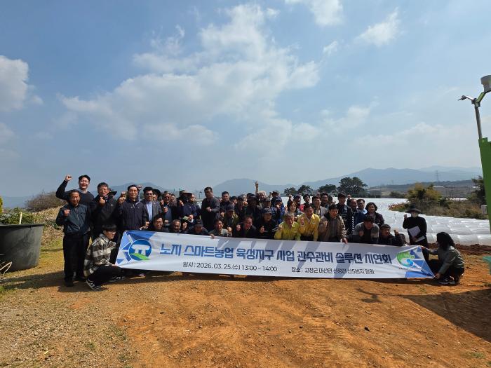 고창군이 지난 25일 대산면 산정리 일원에서 관행농가의 노지 스마트농업 전환을 유도하기 위한 '관수관비 솔루션 시연회'를 성황리에 개최했다고 밝혔다.이날 행사에는 고창군 지역의 배추와 무 재배 농가 …
