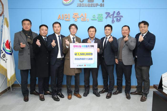 국제라이온스협회 356-C(전북)지구 정읍라이온스클럽(회장 김성일)과 정읍시 어린이집연합회 법인분과(분과장 류재근)가 4일 설 명절을 앞두고 관내 취약계층 지원을 위한 성금으로 각각 150만원과 100만원…