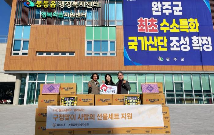 국제구호개발 NGO 월드쉐어 대전지부(지부장 박지영)가 지난 3일 완주군 봉동읍 행정복지센터에 500만 원 상당의 참치선물세트 150개를 전달했다.월드쉐어는 전 세계 아동과 취약계층의 생존과 보호, 자립을…