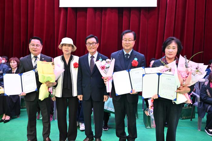 완주군의회 이순덕 운영위원장과 성중기 의원이 27일 완주군 문화체육센터에서 열린 ‘2026년 효도대상 시상 및 어르신 위안 행사’에서 효사랑실천 대한노인회 전북특별자치도 연합회장 표창을 각각 수상했…