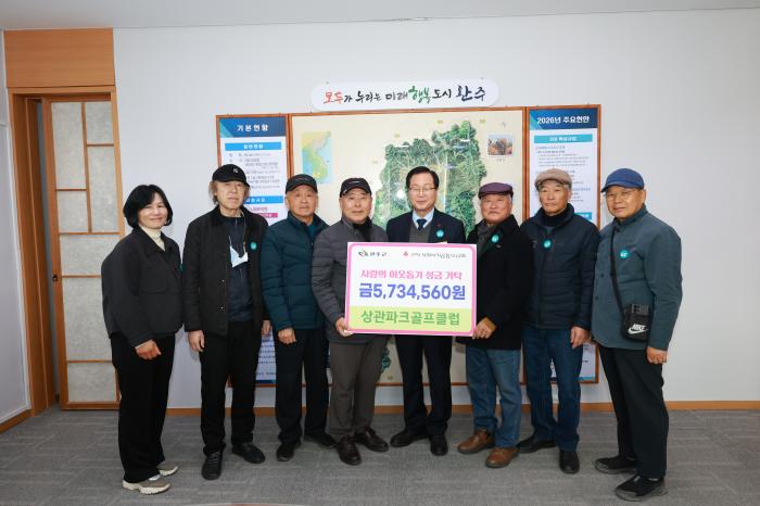 완주군 상관파크골프클럽이 최근 군수실에 방문해 상관면을 위해 사용해 달라며 후원금 573만 4,560원을 전달했다.이번 후원금은 상관파크골프클럽 회원들이 이용료를 모아 마련한 것으로, 해마다 꾸준한 나…
