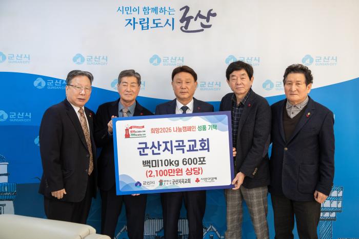군산지곡교회(담임목사 양성진)가 18일, 연말연시 소외된 이웃을 돕기 위해 백미 10kg 600포(2,100만 원 상당)를 군산시에 기탁하며 12년째 이어온 훈훈한 이웃사랑을 실천했다.지난 2014년부터 군산지곡교…