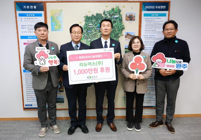 리뉴어스(주)가 지역 내 어려운 이웃을 지원하기 위해 성금 1,000만원을 완주군에 전달했다.19일 완주군에 따르면, 이번 나눔은 ‘희망 2026 나눔 캠페인’의 일환으로 추진됐으며, 전달된 성금은 복지 사각…