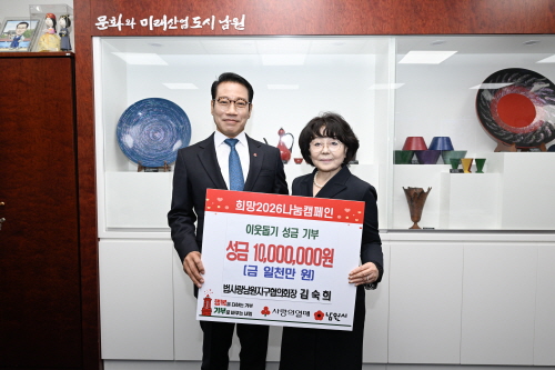 남원시는 '희망2026 나눔 캠페인'의 본격적인 시작과 함께, 매년 꾸준한 나눔을 실천해 온 김숙희 회장(법무부 법사랑위원 남원지구협의회)이 올해도 변함없는 기부 참여로 남원시 1호 기부자가 되었다고 밝…