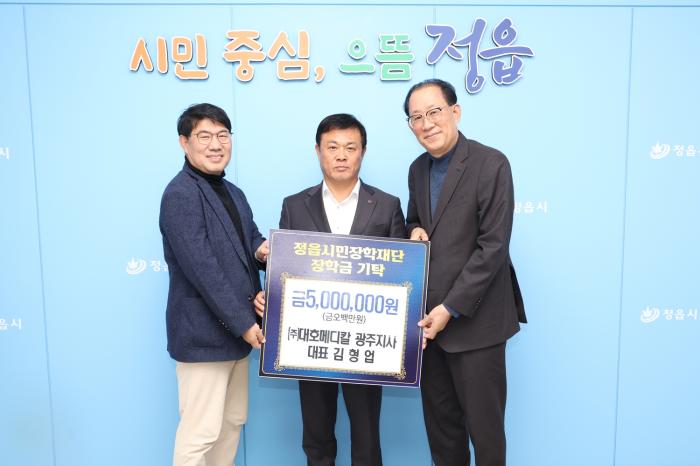 고향을 떠나 타지에서 사업을 일군 출향인이 후배들을 위해 든든한 후원자로 나섰다.정읍시는 지난 25일 ㈜대호메디칼 광주지사 김형업 대표가 정읍시민장학재단에 지역 인재 양성을 위한 장학금 500만원을 …