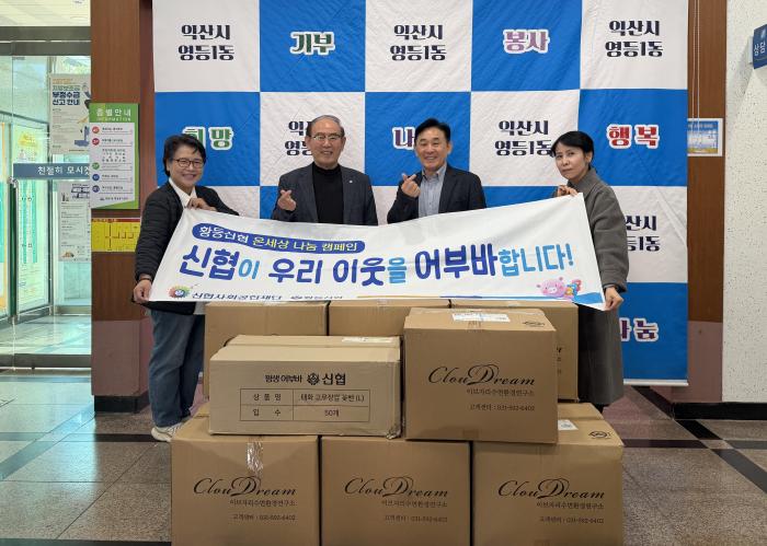 익산시 영등1동에 이웃을 살피는 따뜻한 마음이 전해졌다.'황등신협(이사장 김두현)'은 21일 영등1동 행정복지센터를 방문해 겨울 이불 20채를 기탁했다.이날 기탁은 황등신협이 추진하는 '온(溫)세상 나눔…
