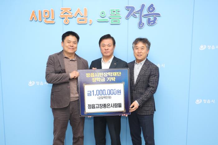 정읍시민장학재단은 지난 23일 지역 모임인 ‘정읍고창좋은사람들(회장 박춘식)’이 지역 인재 양성을 위한 장학금 100만원을 기탁했다고 밝혔다.정읍과 고창 지역 주민 25명으로 구성된 이 모임은 단순한 …