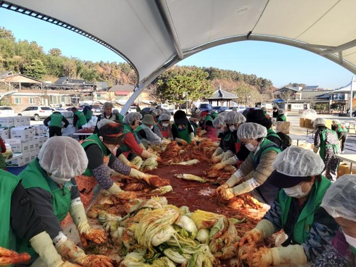 새마을운동진안군지회(회장 김문옥)는 12일 북부마이산 특설무대에서 사랑의 김장 나누기 행사를 개최했다.11개 읍, 면 남녀 회원 200여 명은 추운 날씨에도 이른 아침부터 모여 어려운 이웃을 생각하며 정…
