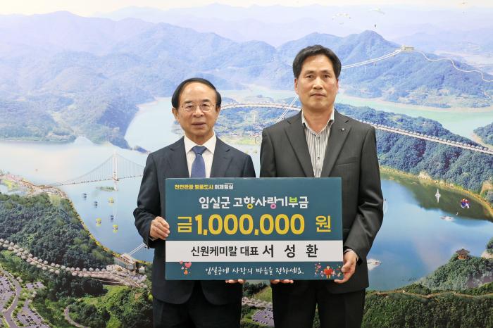 전주시 소재 화학제품 유통기업 신원케미칼의 서성환 대표가 지난 5일 임실군청을 방문해 고향사랑기부금 100만 원을 기탁했다.신원케미칼은 기타 화학물질 및 화학제품 도매업을 영위하는 기업으로, 지역사…