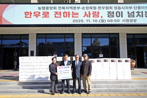 지역사회의 어려운 가정에 작은 힘이 되고자 정읍의 축산 3단체가 뭉쳤다.순정축산업협동조합(대표 남상국), 전국한우협회 정읍시지부(대표 한양수), 단풍미인한우 영농조합법인(대표 진기춘)은 10일 3300만…