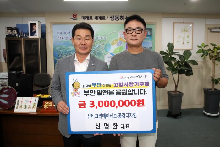 부안군은 최근 미디어 콘텐츠 매니지먼트 기업 유비크리에이티브와 디자인 전문업체 공감디자인을 운영하고 있는 신명환 대표가 부안군에 300만원의 고향사랑기부금을 기탁했다고 밝혔다.신명환 대표는 콘텐…
