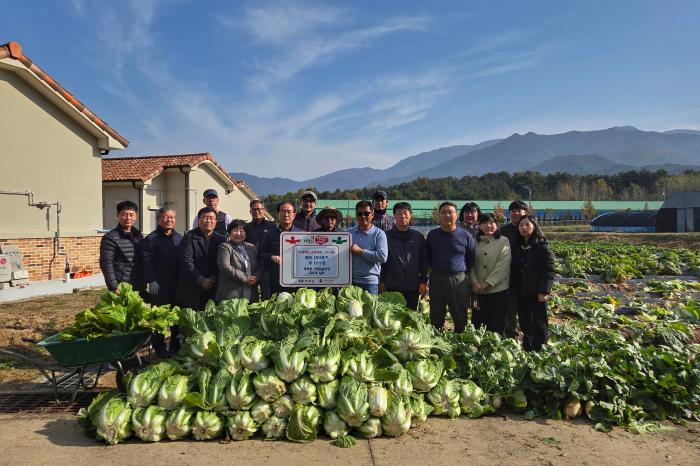 2025년 무주군 체재형 가족실습농장 교육생들이 6일 무주군자원봉사센터에 김장용 배추 150포기와 무 100개를 기부하며 훈훈함을 전했다.교육생들은 “지난 3월 무주군 체재형 가족실습농장에 입소한 뒤로 …