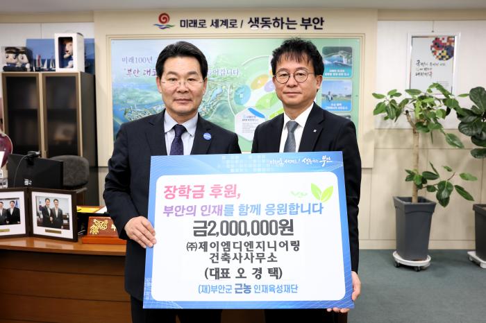 부안군 근농인재육성재단은 전주시 소재 건축설계 및 엔지니어링 서비스 기업인 ㈜제이엠디엔지니어링 건축사사무소가 지역 학생들의 꿈과 미래를 응원하기 위해 장학금 200만 원을 기탁했다고 밝혔다.이번 …