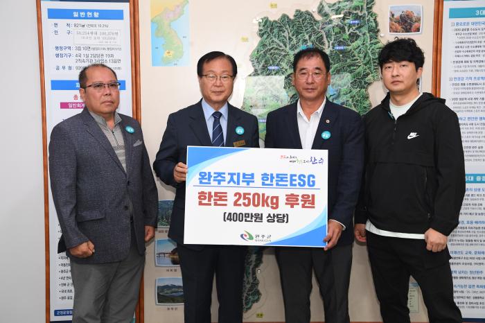 (사)대한한돈협회 완주지부가 완주군에 400만 원 상당의 돼지고기 전지 250kg를 전달했다.최근 열린 전달식에는 유희태 완주군수를 비롯해 조동선 지부장, 추금해 부지부장, 박수홍 사무국장, 이중완 감사, …