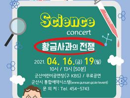 군산시 어린이공연장은 올해 첫 번째 기획공연으로 4월 과학의 달을 맞아 과학마술을 소재로 한 연극 '황금사과의 전쟁'을 오는 16일과 19일(각 10시, 13시)에 개최한다고 9일 밝혔다. 이 공...