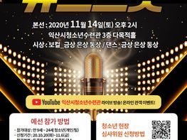 익산시청소년수련관에서 청소년들의 꿈과 끼가 펼쳐지는 무대인 2020익산시청소년어울림마당 '청소년트로트축제, 유스트롯'은 오는 11월 14일 토요일 오후 2시부터 익산시청소년수련관 3층 다목적실을 배경...