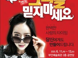 부안군 기획공연 연극 ‘그녀를 믿지마세요’가 오는 11일~12일 오후 7시 30분과 13일 오후 3시, 7시30분 등 총 4회에 걸쳐 부안예술회관 2층 공연장에서 펼쳐진다. 특히 부안예술회관은...