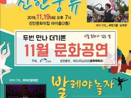 진안군은 11월 문화기획 공연으로 ‘진한 풍류’를 19일 오후 7시 진안문화의집 마이홀 무대에 올린다.이번 공연은 국악가요‘배띄어라’, 한국무용‘진도북춤’, 국악기 합주, 마술사 김승준이 펼치는 ‘신비한 마술쇼’, ...