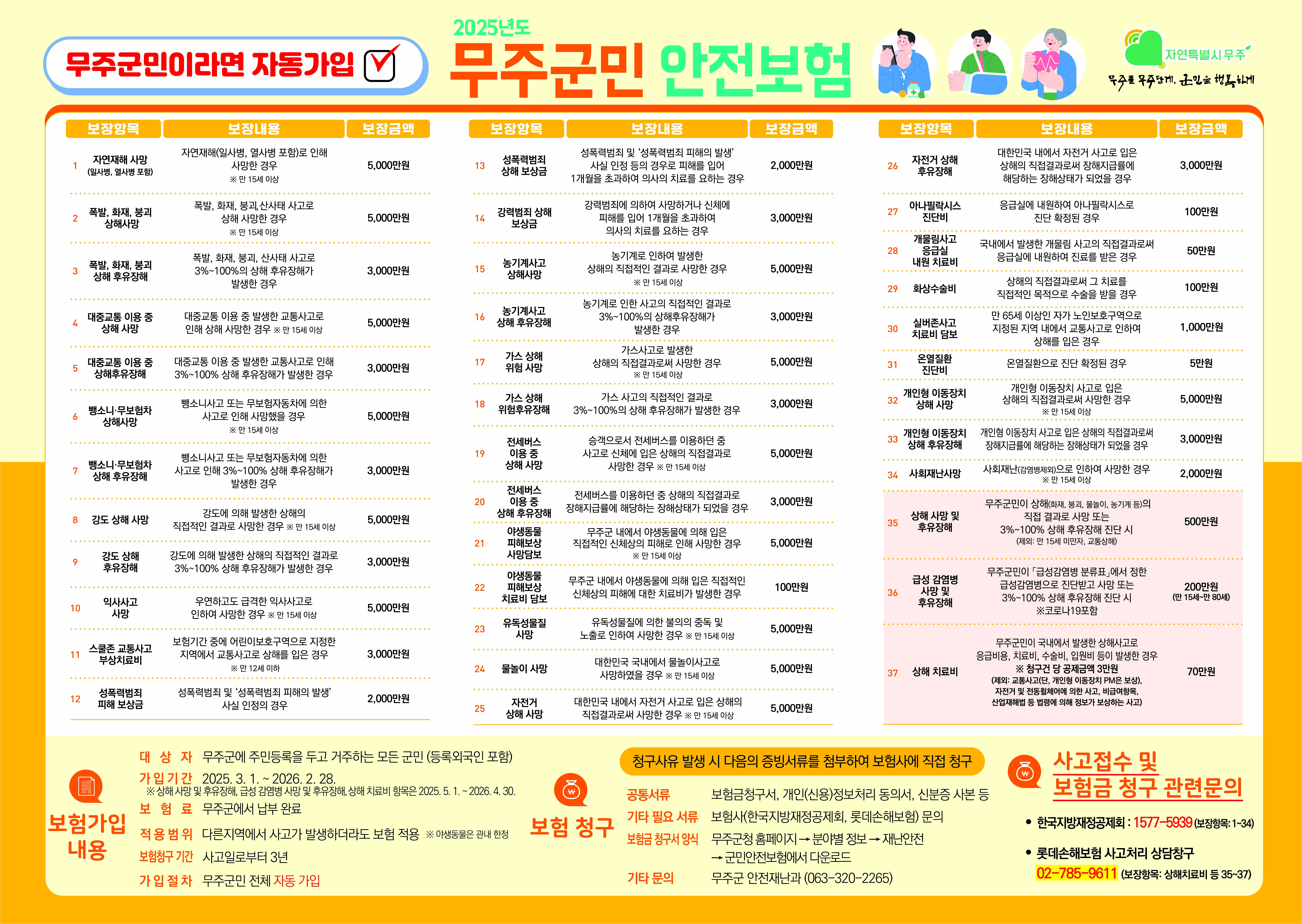 무주군이 ‘군민안전보험’ 시행을 통해 군민 삶의 질 향상과 안전망 강화에 크게 이바지하고 있다.무주군에 따르면 ‘무주군민안전보험’은 불의의 재난·재해·범죄 및 사고로 피해를 본 군민들의 어려움…