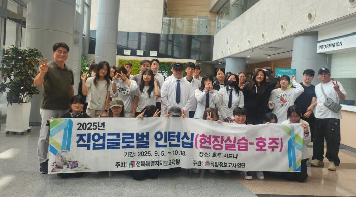도내 직업계고 학생 58명이 호주와 일본에서 현장실습형 글로벌 인턴십에 참여한다.전북특별자치도교육청은 도내 6개 학교 사업단에서 학생과 인솔교사 등 총 70명이 '2025 직업계고 현장실습형 글로벌 인턴…