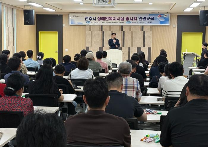 전주시 장애인복지시설시설 종사자 200여명 대상으로 한 시설 장애인 인권 보호 위한 교육이 진행됐다.