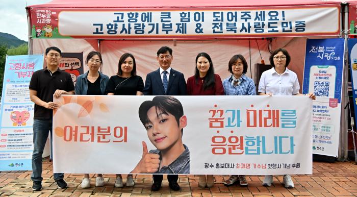 장수군은 ‘제19회 장수한우랑사과랑축제’ 현장에서 장수군 홍보대사이자 군 출신 가수로 활동 중인 최재명을 응원하기 위해 대구 달성군에서 방문한 한 팬이 어린이 도서 600권을 기탁했다고 23일 밝혔다.