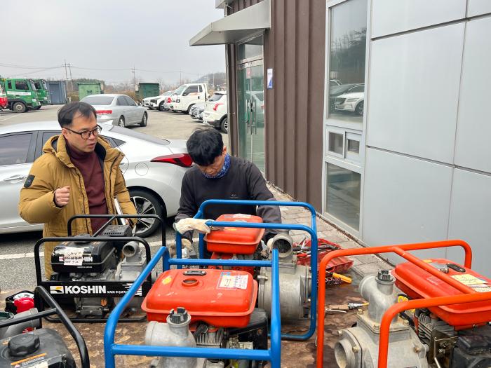 합동 점검반은 읍·면에서 보유하고 있는 양수기의 상태를 점검하고, 소모품 교체와 수리 등을 진행해 즉시 사용이 가능하도록 정비했다.