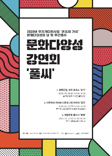 완주문화재단, 플래닛완주 3호점 별빛공방, 다문화공동체 보물섬, 완주군평생교육아카데미가 공동 주최·주관하고 문화체육관광부와 한국문화예술위원회가 후원하는 <문화다양성 강연회 ‘풀씨’>는 완주군의 문화다양성 이슈를 알아보고 함께 소통하는 시간으로 준비됐다.