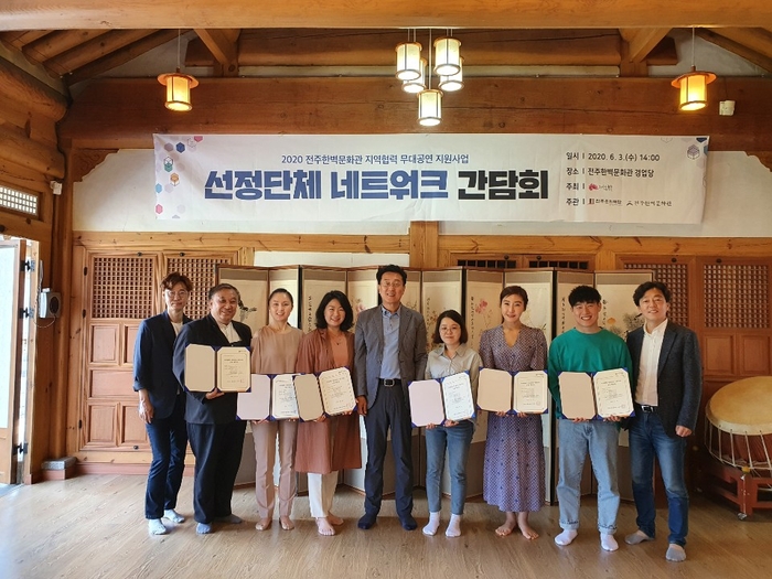 전주문화재단에서 공모하여 선정된 전주한벽문화관 2020 지역협력 무대공연 지원사업의 6개 단체가 6월 3일(수) 오후 2시에 전주문화재단 한벽문화관 경업당에서 네트워크 간담회를 가졌다.