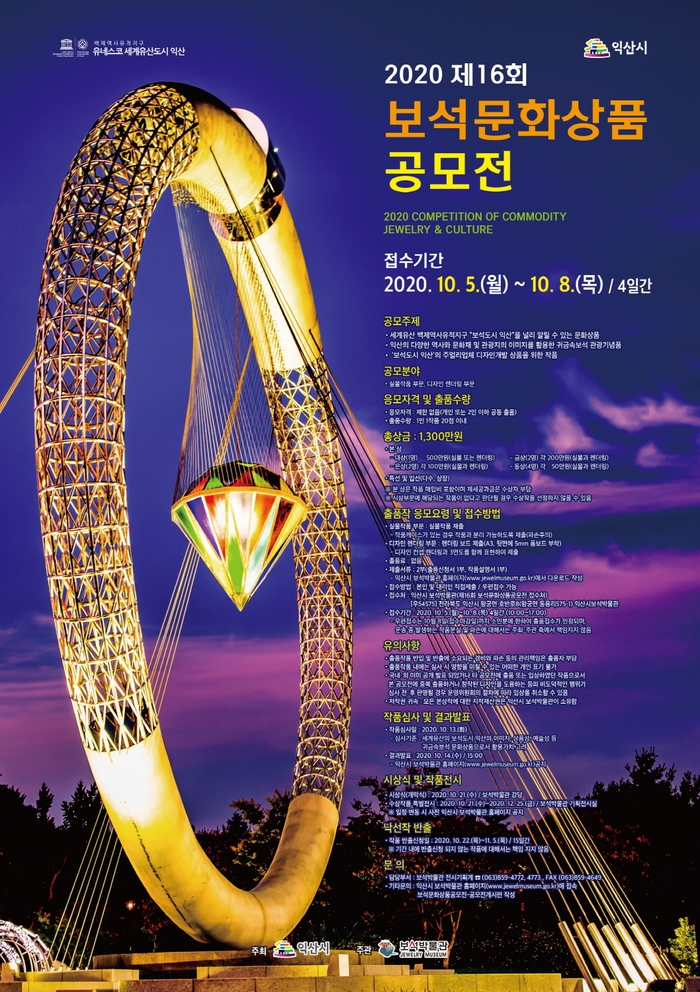 익산시 보석박물관에서 ‘2020 제16회 보석문화상품 공모전’을 개최한다.