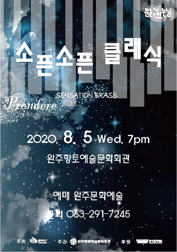완주군의 문화가 있는 날 지원 사업 부드러운 팝페라 ‘소픈소픈 클래식’은 공연장에서 직접 볼 수 있는 대면 공연이며, 오는 8월 5일 오후 7시에 완주향토예술문화회관(홈페이지 참고,