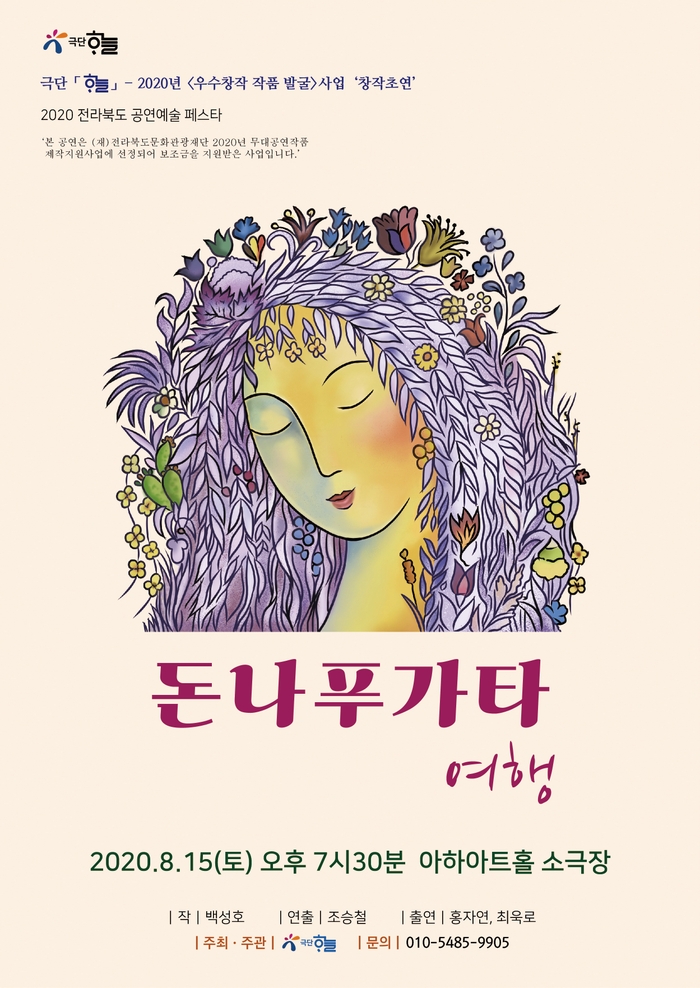 코로나 19시대에서 연극인들의 열정이 계속되고 있다. 2020년 전북문화관광재단의 무대공연작품 제작 지원사업의 일환인 공연예술인 페스타 중 극단 'ㅎㆍ늘' (대표 및 연출 조승철)이 펼치는 연극공연이 오는 8월 15일 광복절 오후 7시 30분에 아하아트홀에서 열린다.