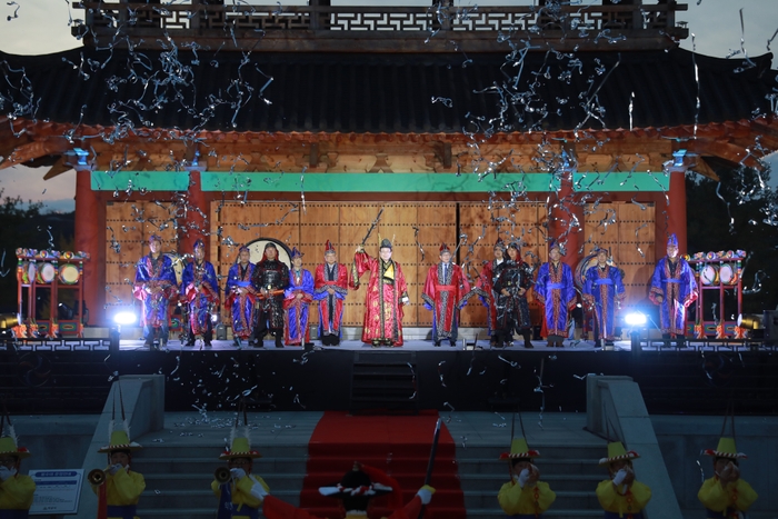 지난 달 31일 오후 5시 익산 금마 서동공원 서동루 무대에서 제4회 백제무왕 익산천도 입궁의례 행사가 코로나로 인해 비대면으로 방역을 철저하게 이행하며 진행하였는데 이날 행사는 오는 5일부터 유튜브를 통한 온라인 송출을 위한 최첨단 촬영기법을 사용하면서 한다.
