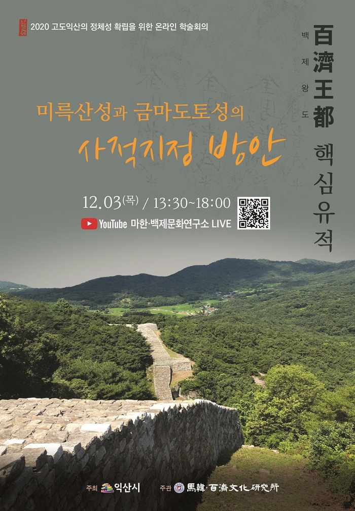 익산시와 원광대학교 마한백제문화연구소는 지난 3일‘미륵산성·금마도토성 사적지정 방안’이라는 주제로 고도익산 정체성 확립 학술회의를 비대면으로 개최했다.