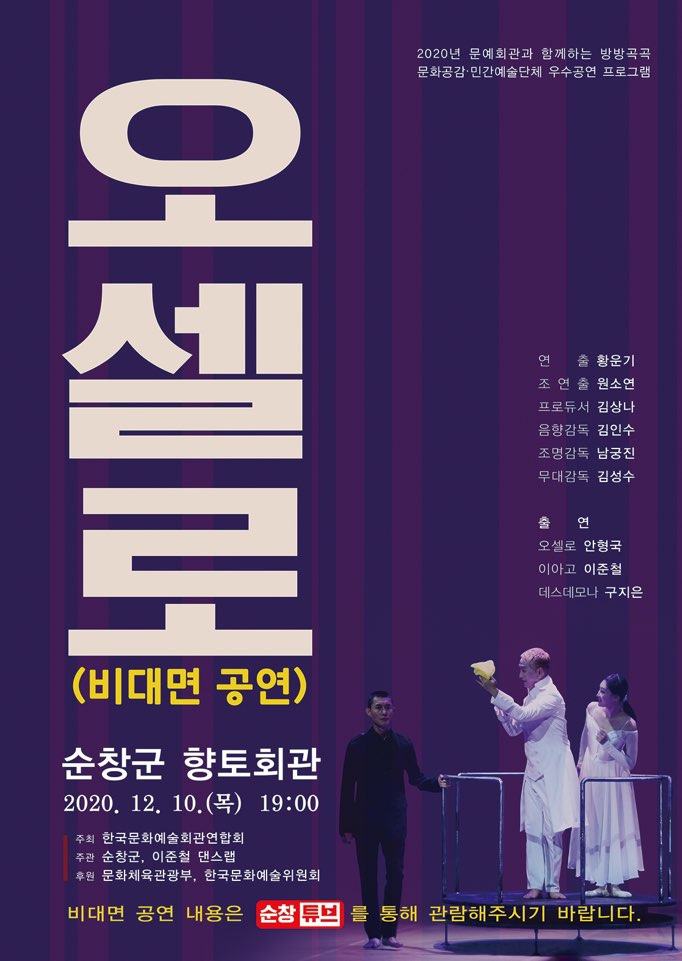 ‘오셀로’공연 영상은 편집 및 수정 후에 오는 18일부터 ‘순창튜브’를 통해 공연 관람이 가능하다.