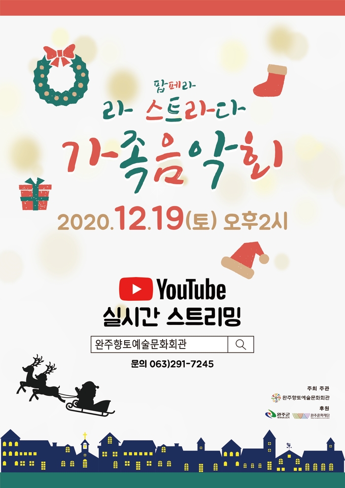 완주향토예술문화회관(관장 이재정)은 코로나 19의 재확산으로 인해 더 춥게 느껴지는 겨울, 지역민들에게 문화예술을 통한 따스함을 전하고자 연말 온라인 기획공연을 선보인다.